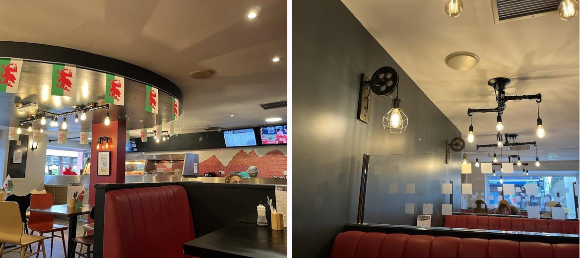Place lovely and clean. Nice friendly staff especially the older lady on the till Food arrived promptly and hot. Nicely decorated inside and nice to have comfortable individual booths inside of hard wooden table n chairs !